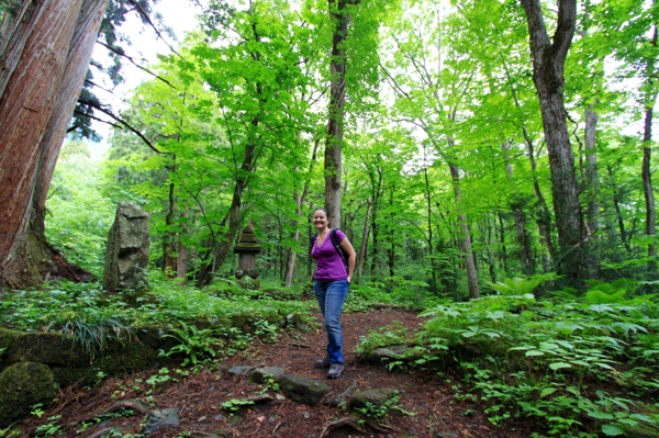 Our train into Nagano City arrived at 10:00am, and since we couldn’t check-in until 3:00pm, we left our bags at the hotel and jumped on the 10:30am bus to Togakushi. An hour later we had travelled 20kms (another slow drive up narrow winding roads) and had climbed from 1000m elevation (Nagano City) to over 1500m. The forest up in the mountains was very wet – like the temperate rainforests we’ve seen in Tassie or along the West coast of New Zealand. Lots of ferns and moss, babbling brooks and leafy trees; the best bit was that it was a few degrees cooler under all that verdant green foliage.