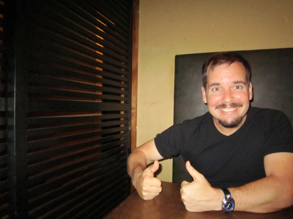 After our regular mid-afternoon Nanna-nap we took ourselves out for dinner and found a funky bar and grill house where they lock you in your own private cell for dinner (seriously – check out the photos). I’m sure it’s for added privacy, but, errrr, it just seemed a little weird to me. The food was great – lots of meat on a stick, grilled and tasty. the funniest bit was when we order 2 salads (one each), and the waiter checked with us 3 times, in both English and Japanese that we REALLY wanted TWO whole, enormous salads. “Yes, yes we do want 2 giant salads please”, we said. So he went to the kitchen with our order, and promptly came back a minute later to reconfirm that we REALLY, REALLY wanted TWO of THESE particular enormous salads. He must have gone into the kitchen, handed over the order and then been questioned by the chef, who ALSO couldn’t believe that 2 people could possibly want to order that much food! Seriously? Is it THAT unusual for 2 people to want 2 salads? Obviously it is! We got our salads in the end, and lots of grilled meat on a stick, making for a very satisfying end to a very satisfying day.