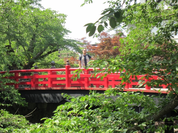 Crossing the Southern Bridge across the moat into Hirosaki-jo ruins.
