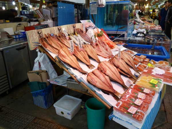 Asa-ichi markets in Hakodate – all sorts of seafood for sale.