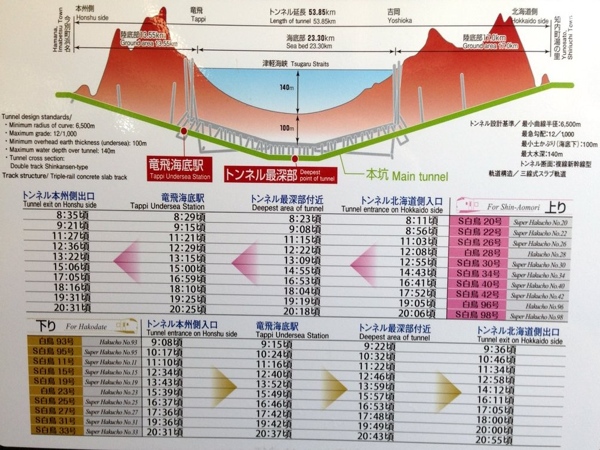 Graphical representation of the Seikan Tunnel that took us hundreds of meters underground, and underneath the Tsugaru Strait.