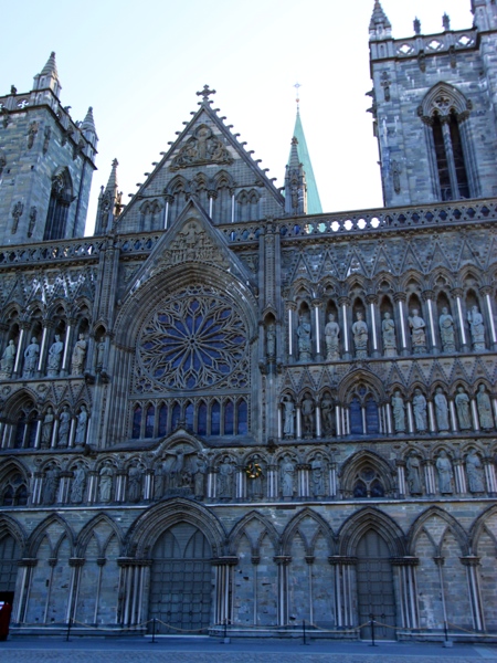 Refreshed and re-energised we then continued on to Nidaros Cathedral, Trondheim’s enormous Gothic church. Nidaros Cathedral was fist built in 1030 over St Olaf’s burial site (though on a much smaller scale than what stands there today), and became the seat of power of the Roman Catholic Church in Scandinavia soon after. Following the Reformation of the 16th century, however, all traces of St Olaf were removed and the church was converted into a Lutheran cathedral. Regardless of its denomination, the cathedral has played an important role in Norwegian history for almost a thousand years, as this was where Norway’s kings and queens came to be consecrated. Even when the capital of Norway moved to Oslo, Nidaros Cathedral still maintained its role in this regard.