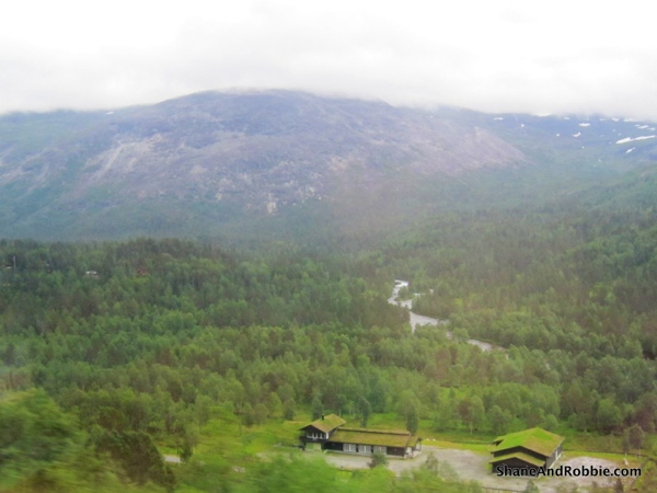Between Bergen and the Hardangervidda Plateau we passed many small villages and farming communities. Often the houses have turfed roofs for insulation – like these.