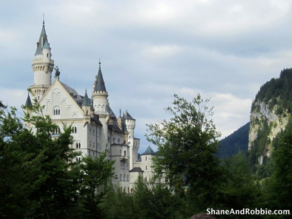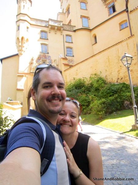 The iconic castle seen in Disney’s animated movie “Cinderella” and at Disney Land is based on Neuschwanstein Castle (translation = New Swan Stone Castle) – a 19th-century palace built on a rugged, sonty hill above the village of Schwangau in southwest Bavaria, Germany. For some very childish and immature reasons (i.e. I wanted to be a princess and live in said castle), Neuschwanstein has been on my personal “Bucket List” for 30 years. Shane, being the kind and patient husband he is, agreed to take me there today. IT WAS AWESOME!