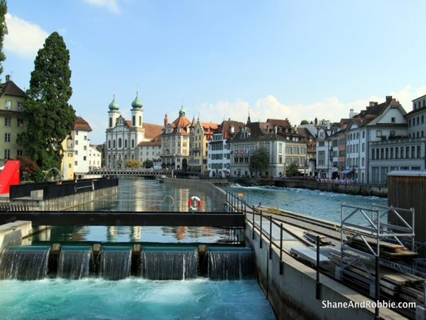We were absolutely beguiled by the lake, the river, the mountains, and the beautiful old town. All that joyful bliss came to a bit of a screeching end however when it came time for dinner (sound of a needle being dragged unceremoniously across an old vinyl record). That’s when we discovered now incredibly expensive Switzerland can be. Holy moly – it’s almost like being in Norway again (almost)! We knew Switzerland would be expensive (our accommodation, for example, is easily 1.5-2.0x what we paid in Germany), but again the shock of $6AUD coffees, $10AUD beers and $60AUD steaks left us a little shell-shocked. We miss Germany and its $12AUD schnitzels already!! *SIGH* I guess that’s just the price you pay for the extraordinary natural wonders that Switzerland has to offer! Well, it’s goodnight now from us here in lovely Lucerne – we’ve just had the coolest ragtime band set up shop downstairs (they’re buskers I think) and the music is seriously cool so we’re off to join the crowds and enjoy some free entertainment! More to come from Switzerland tomorrow…