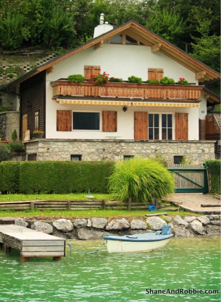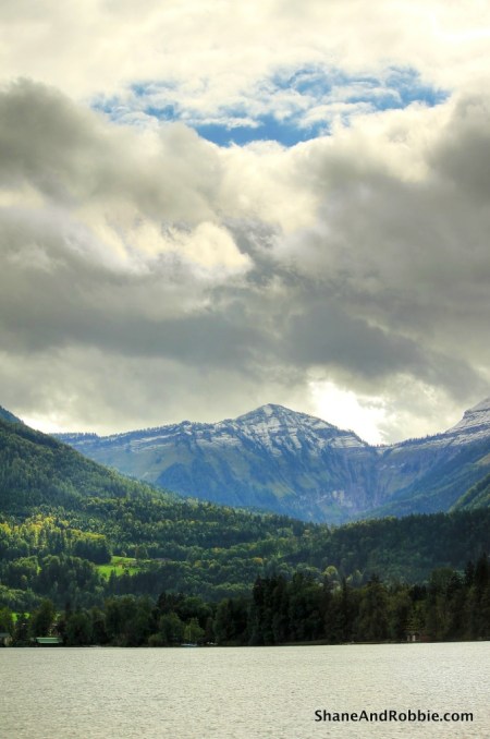 We drove back over to Austria for the afternoon to see some of the lakes of the Salzkammergut and this is when the sun deigned to reveal itself for a few glorious moments. We drove to Wolfgangsee (translation = Lake Wolfgang) and stopped in at the tiny village of St Gilgen, whose only claim to fame is that Mozart’s mother was born there (it was a cute enough town, but very small). From St Gilgen we hopped on a boat and cruised around the lake to the town of Sankt Wolfgang. The lake itself was as spectacular as only alpine lakes can be; surrounded by mountains the lake is a beautiful aquamarine colour.