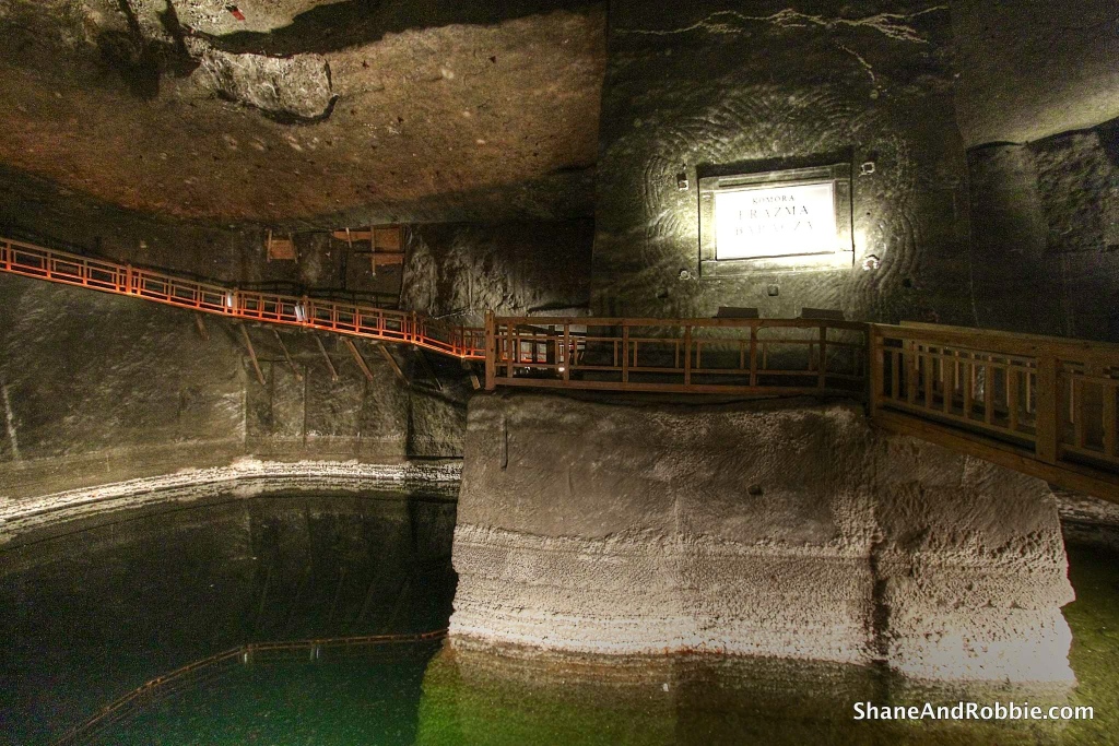 During the tour we learnt how the salt was laid down by an ancient ocean, and how the sandstone in the region is dotted with large deposits of salt crystals – like a cake full of raisins. Our guide (a very funny Polish man who Anglicised his name to “Mark” for us) told us how the miners created artificial lakes in the salt caverns so that the salt was drawn out of the surrounding rock and into the water. The super-saturated salty water was then hauled up to the surface via winches and using horses and carts, where it was then boiled and the pure, crystalline salt residue collected and sold for a tidy profit.