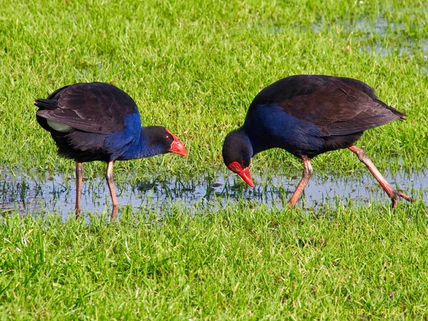 At this stage the rain started and we decided to head back to Whitianga for some lunch. On the way we got to see some pukekos by the side of the road. These blue/black species of water fowl are unique to NZ and, like many of this country’s birds, are virtually flightless* (they can fly but aren’t very good at it and tend not to do, unless in danger).